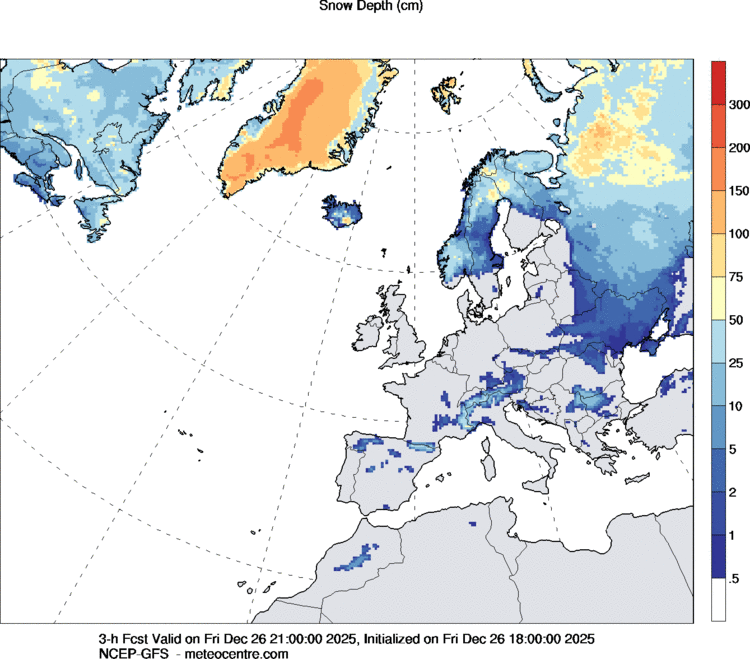 ➡️ Zabilježena 24 h promjena visine snijega, Europa