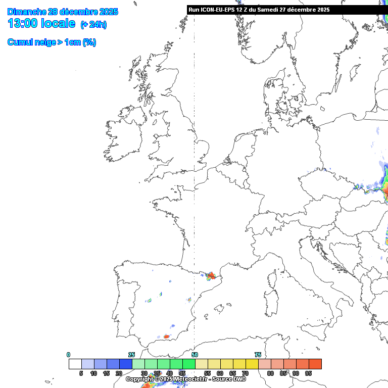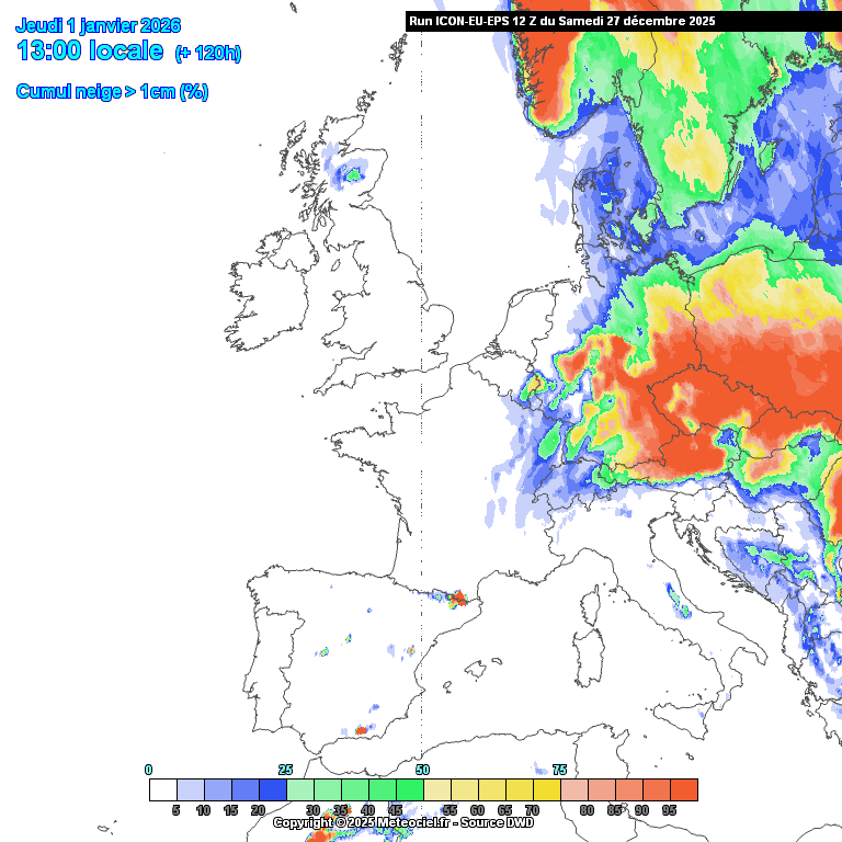 ICON-EU ENS: šanse za 1 cm snijega od 0 h
